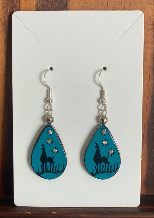 Hand painted wooden tear drop shaped dangle earrings. Authentic hand painted Inka symbols dangle earrings. Sterling Silver Hooks Available.