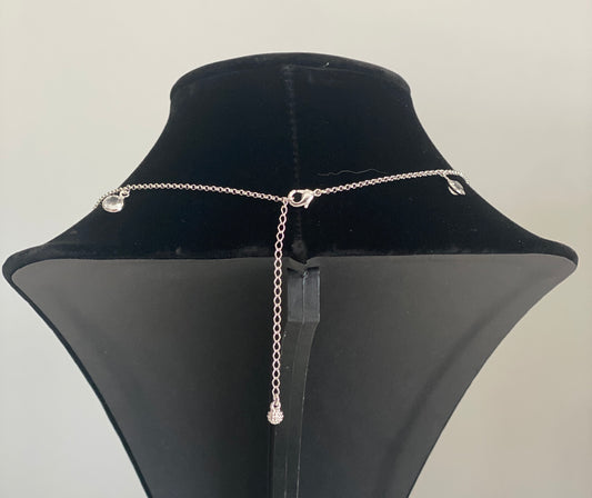 Adjustable 34" Rhodium Lariat Necklace with CZ Accents.