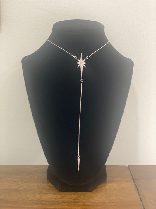 16" Rhodium Star Pendant Necklace with CZ Accents & Dangling Spike. Dainty Celestial Necklace.