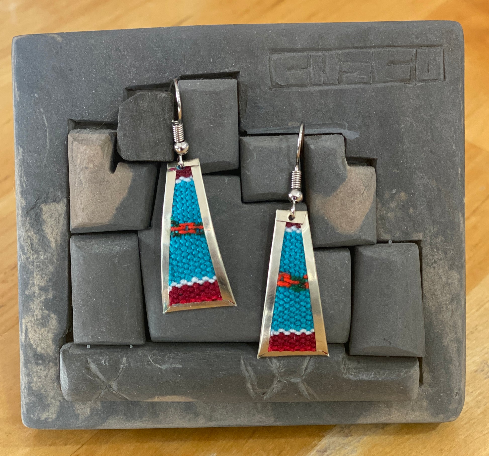 Colorful Handwoven Inka Fabric Earrings - Alpaca Silver Dangle Earrings from Cusco - Sterling Silver Hooks Available