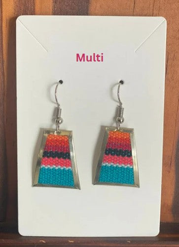 Colorful Handwoven Inka Fabric Earrings – Alpaca Silver Dangle Earrings from Cusco. Sterling Silver Hooks Available