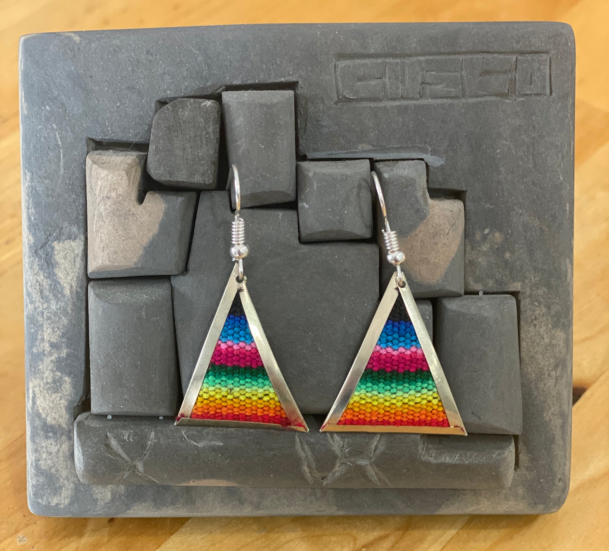 Colorful Handwoven Inka Fabric Earrings – Alpaca Silver Dangle Earrings from Cusco. Sterling Silver Hooks Available