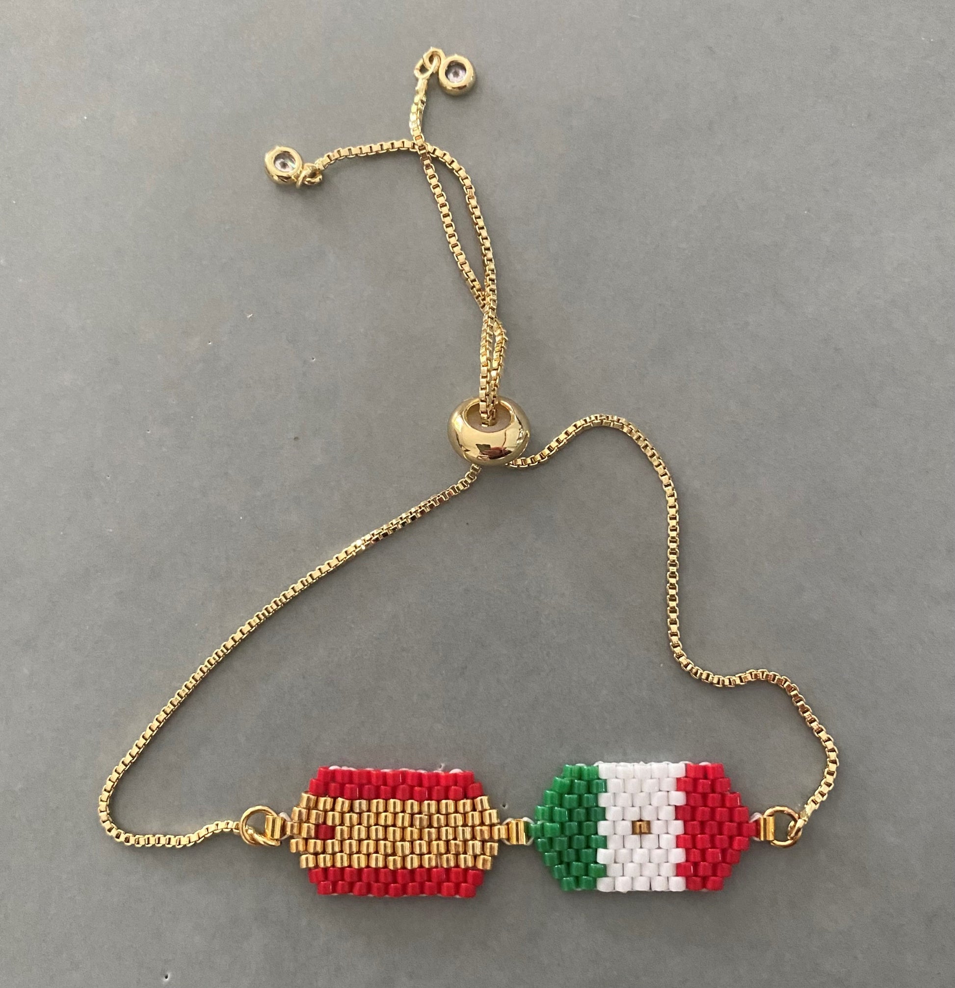 The bracelet is adjustable to fit most wrist sizes, ensuring a comfortable wear for everyone. You can choose between a gold or rhodium-colored chain, adding a touch of elegance and sophistication. Whether you're looking to celebrate your heritage, show support for two nations, or simply appreciate the artistry of handcrafted jewelry, this bracelet offers a meaningful and stylish accessory for any occasion.