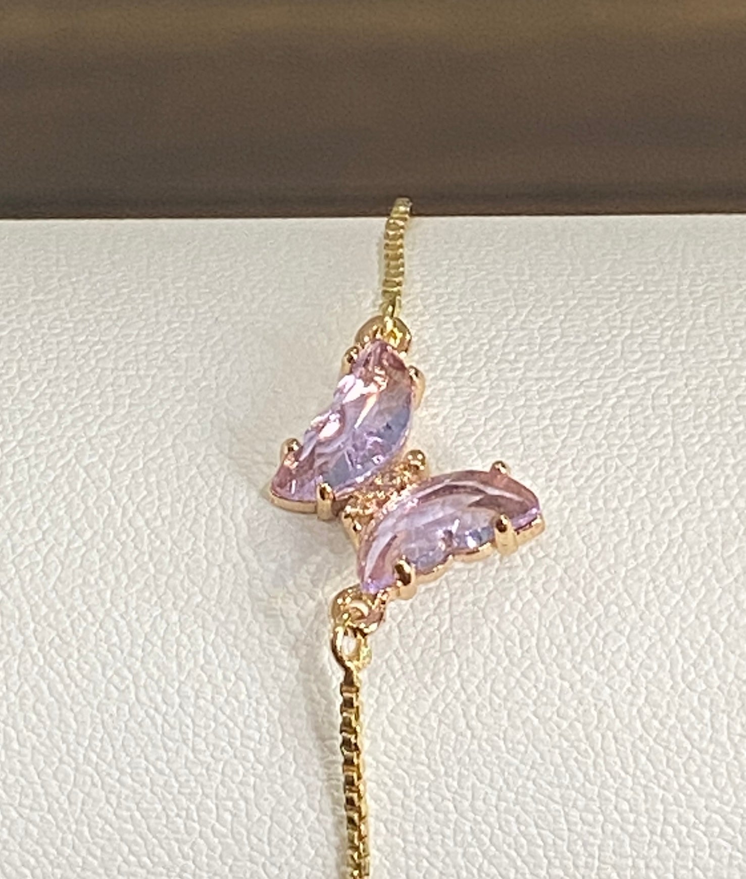 Add a delicate touch of elegance to your jewelry collection with this gold-plated adjustable charm bracelet. Each piece features a beautifully crafted charm made with glass, with select designs showcasing a graceful butterfly detail for a soft, feminine finish.