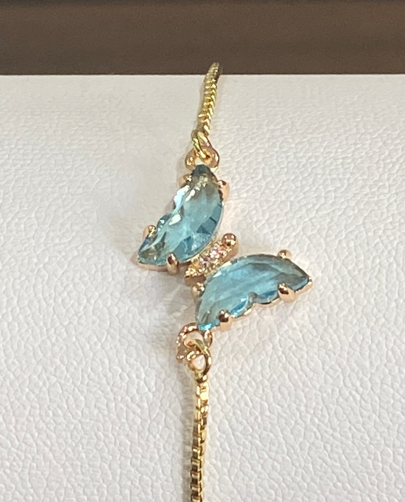 Gold Plated Adjustable Charm Bracelet – Glass & Butterfly Designs (5 Styles Available)
