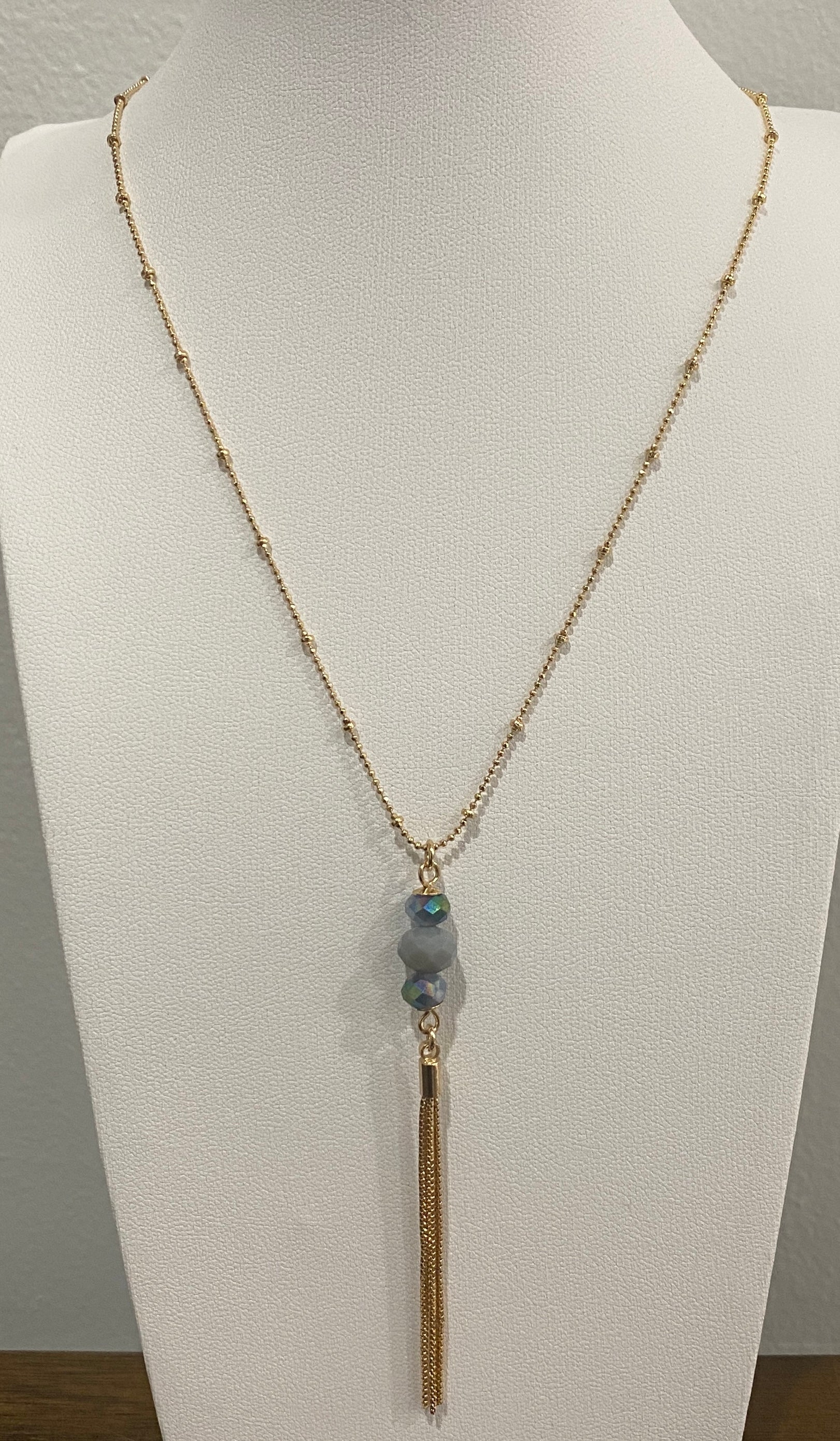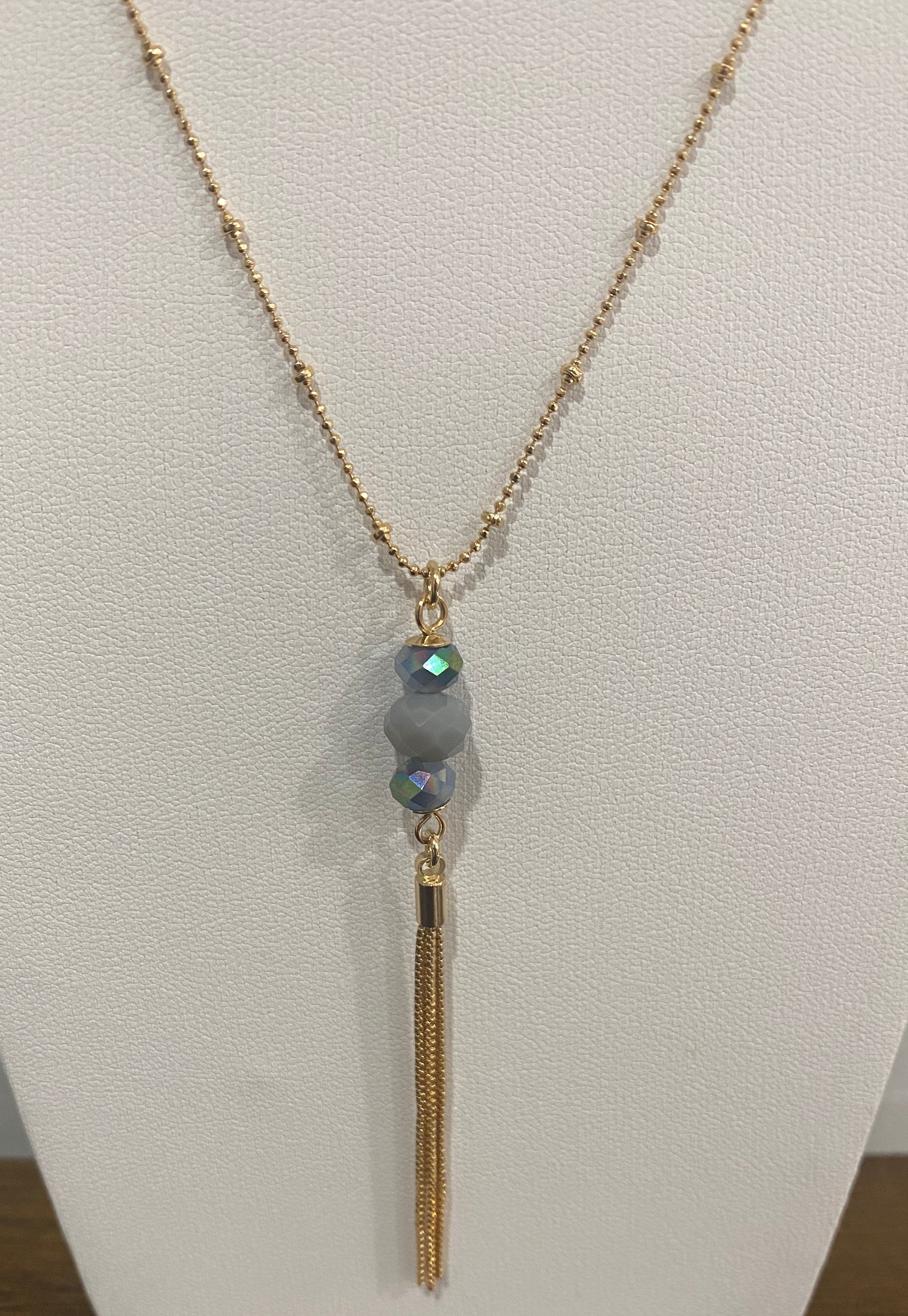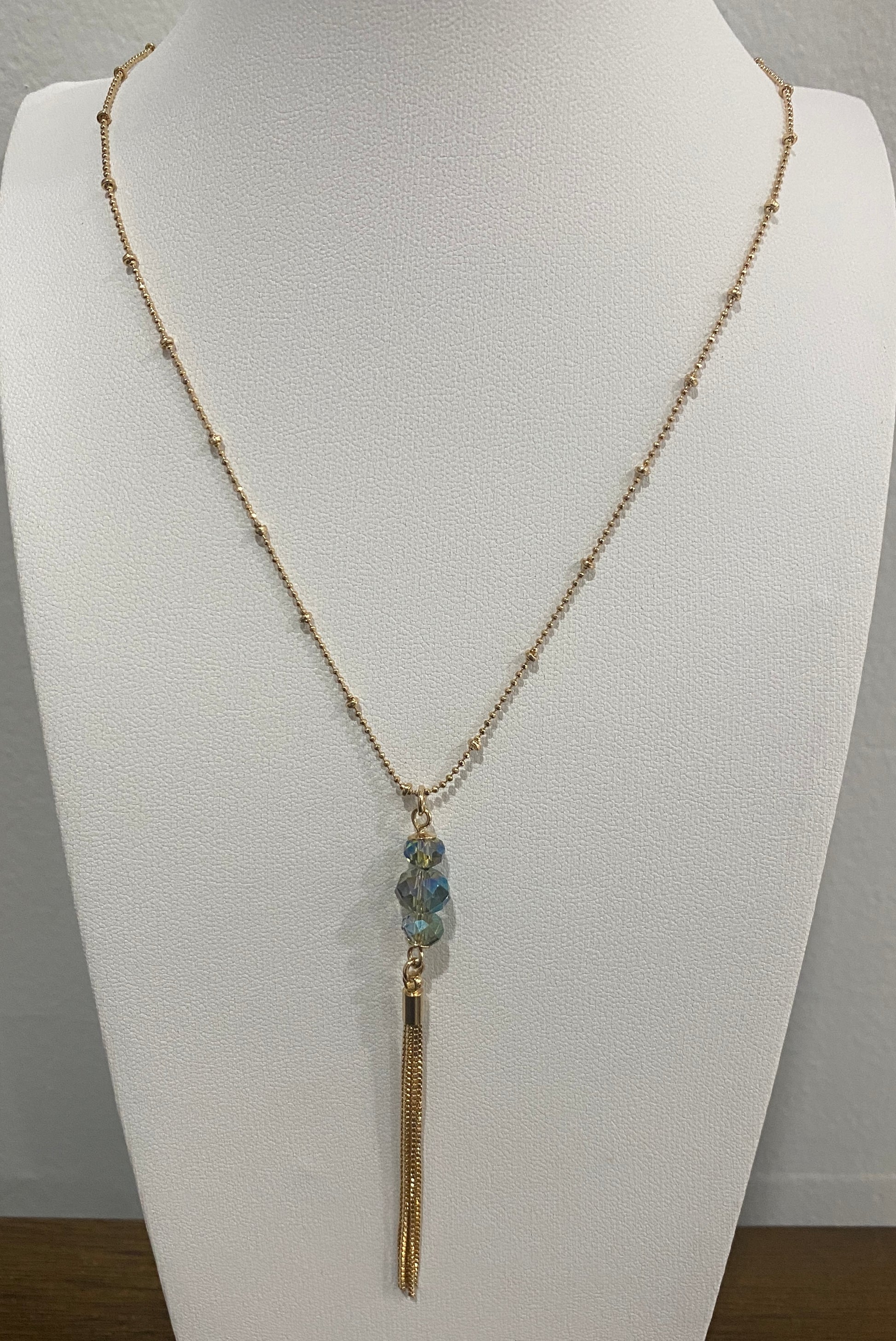 Layered Crystal Pendant Necklace – 18K Gold-Plated Beaded Chain with Box Chain Tassel (27" + 1")