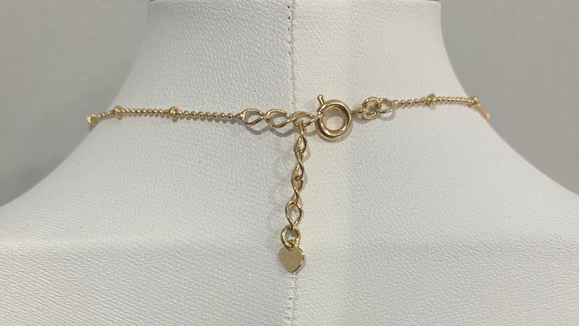 At the center, three stacked faceted crystal beads catch the light with every step, cascading into five fine box chain tassels that create a beautiful, flowing silhouette. Finished with a 1-inch extension and luxuriously gold-plated with 7 coats of 18K gold, this piece is both eye-catching and timeless.