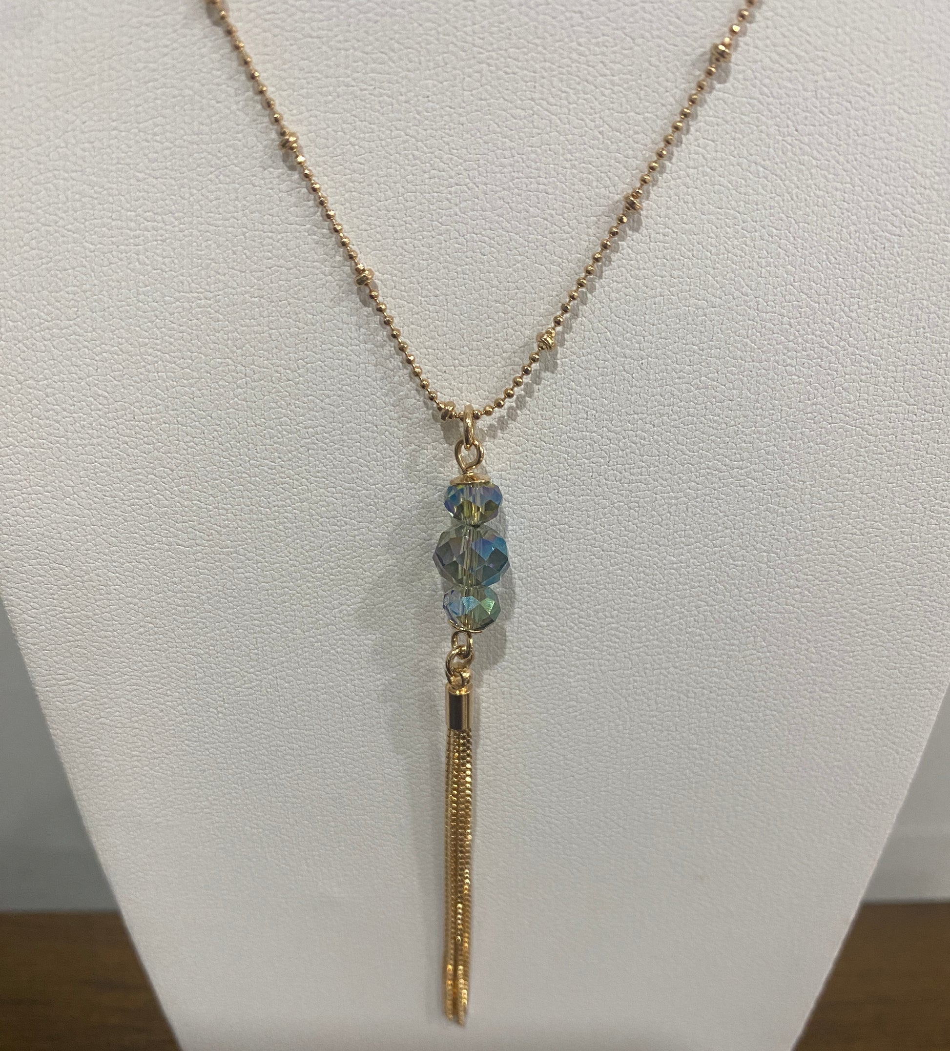 Pendant: 3 faceted crystal beads + 5 box chain tassels