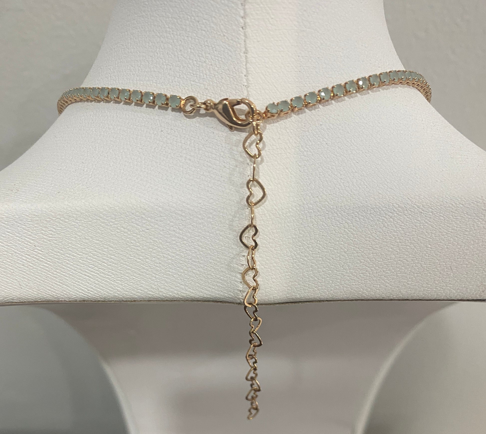 Sea Green Tennis Chain Choker – Gold-Plated with 7 Coats of 18K Gold, Heart-Link Extension (13.5" + 3")